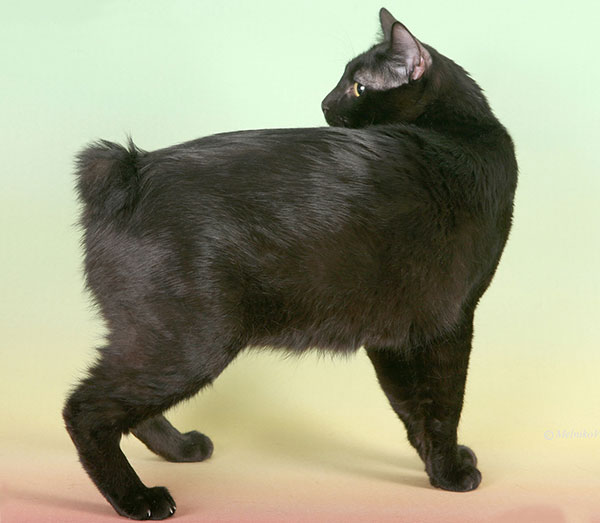 美国短尾猫,顾名思义尾巴是短的一种猫种,起源于19世纪60年代的美国,在美国境外非常的罕见。1964年左右,一对姓桑德斯的夫妇在亚里桑那一个印度渡假村渡假,他们发现了一只外观野性,短毛而尾上翘的幼猫。他们于是收养了这只猫,并为它取名YODIE。后来这只猫和一只叫MICHI的暹罗猫交配,得到的幼崽中有一只奶油色带横斑,这只幼崽就是该品种的起源。短尾猫的一大特点是尾短,这是显性遗传基因变异的结果。开始短尾猫的被毛是短的。然后随着喜玛拉雅猫(英国的色点波斯猫)加入育种,最后得到了中长度被毛的短尾猫。该品种于1989年得到TICA的承认。半长毛美国的短尾猫和长毛美国短尾猫和它们的堂兄妹有着相同的品种特征。