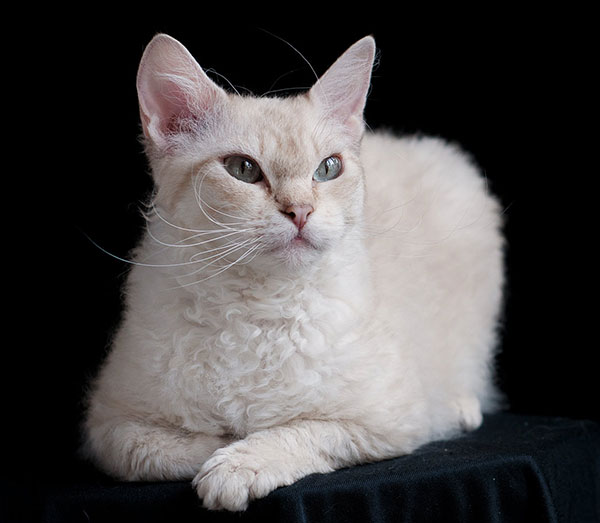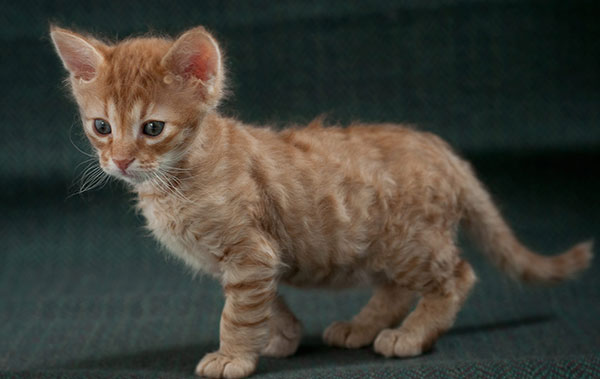 拉邦猫以美丽的卷发著称猫类家族。它们的毛发有长有短,短的弯曲,长的呈螺旋状,此外还长有直发。拉邦猫外形是一个小环型卷发,波浪状的披毛,或长螺旋形的卷发,紧凑的披毛。长毛拉邦猫一般拥有得天独厚的卷曲的羽毛装尾巴,常常呈现出一个完整的花脖圈。这件披毛有适度柔软的质地,但每个猫的披毛都是独特的。大耳朵,模样非常可爱。它的头部为中等大小,稍带圆的楔形,额至鼻梁微隆起,耳朵较大,直立,两耳间距宽,眼睛又圆又大,颜色为棕色,鼻梁高而直,身体修长而结实。