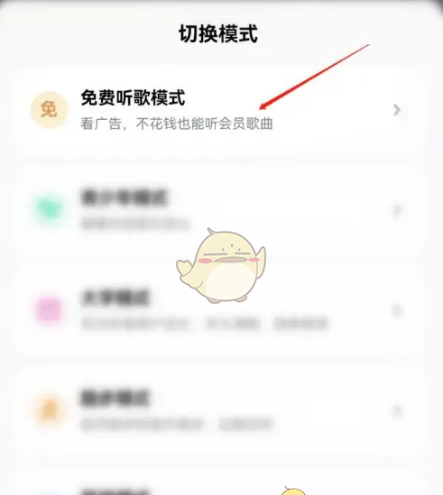 2、接着选择“免费听歌模式”,点击进入
