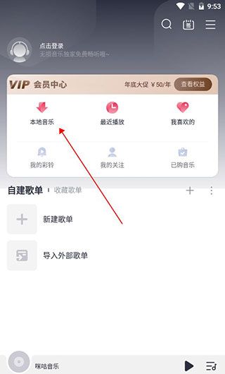 2、本地音乐。点击我们,点击本地音乐,就可以听到你以前下载到手机上的音乐,也可以通过这个软件来进行在线播听。