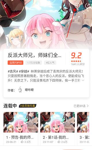 2、选择一本想要下载的漫画,点击右上角的下载按钮。