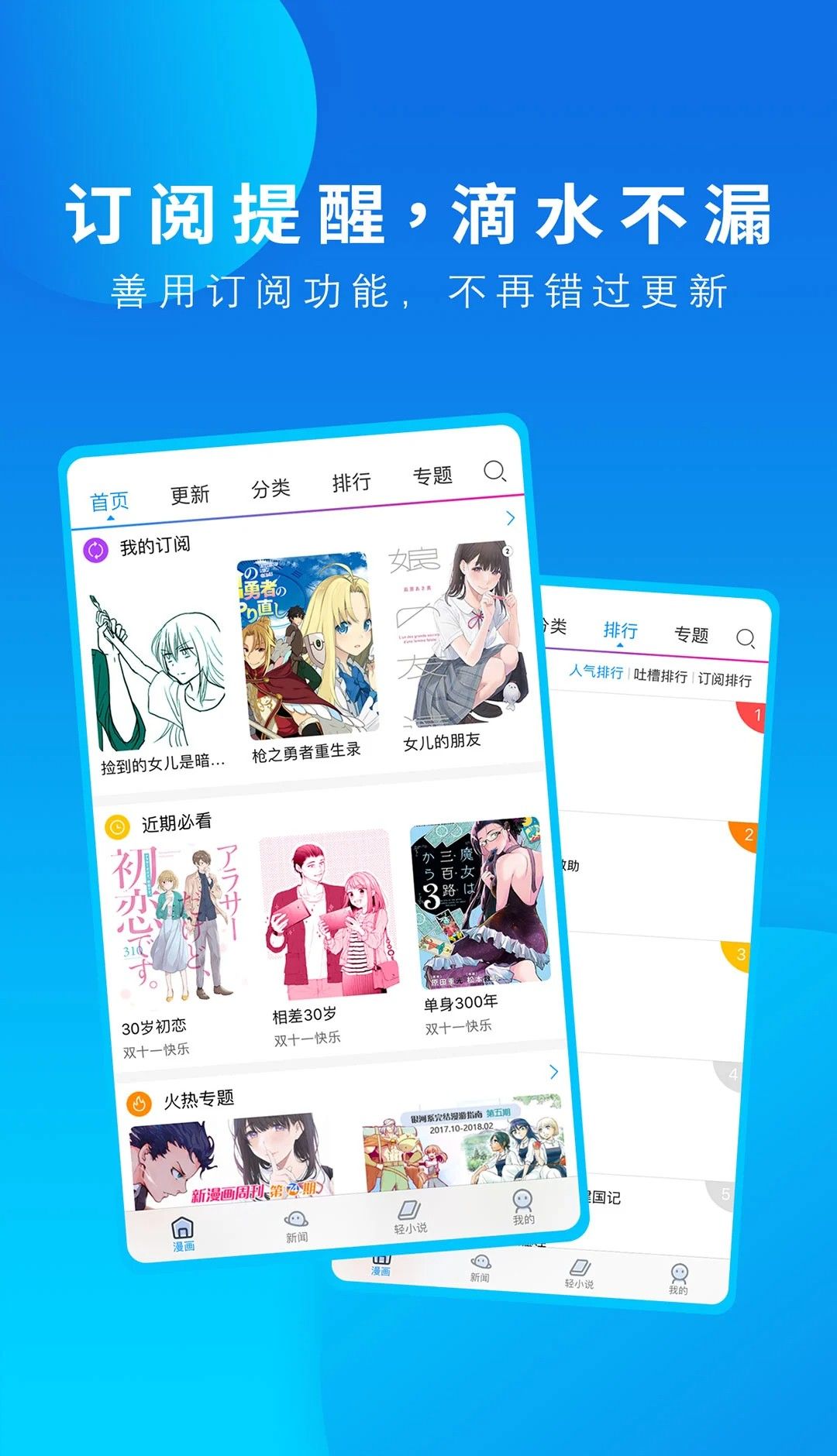 4、人气推送:主页将根据漫画的人气排名进行每日推荐,让用户在打开软件后立即看到最受欢迎的漫画。