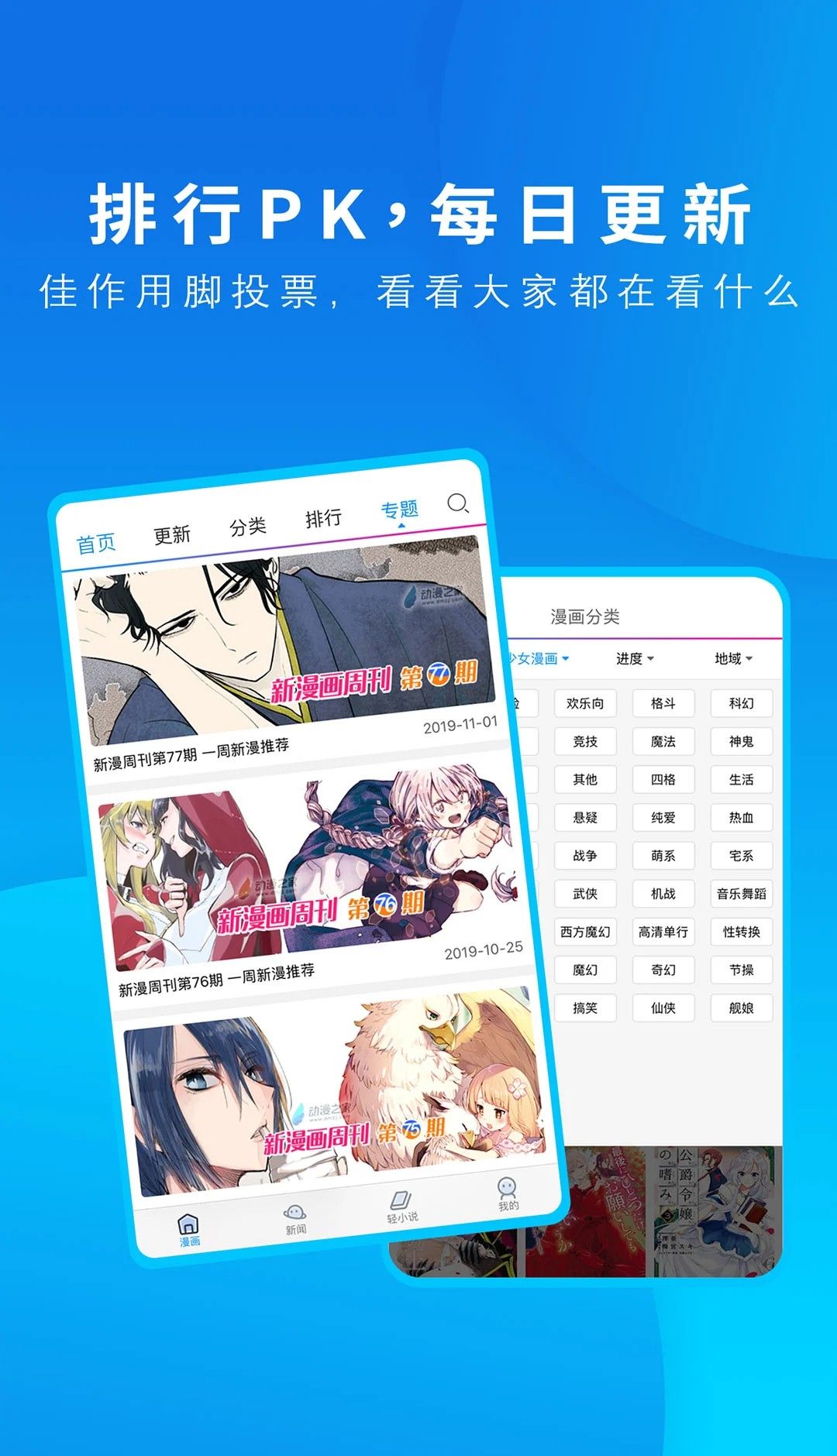 动漫之家是一个可以为您提供各种丰富动画资源的软件。动漫之家app拥有超多高质量的漫画资源,涵盖了各种类型和风格的漫画作品,让用户随时随地享受令人兴奋的漫画阅读体验;还有一个特殊的讨论板,你可以与其他用户分享,也可以放映漫画,你可以选择你喜欢的类型,订阅你感兴趣的漫画,这样你就可以在更新时及时得到通知,还支持在线观看和离线缓存漫画,方便用户在不同环境中阅读;喜欢的伙伴们欢迎下载!
