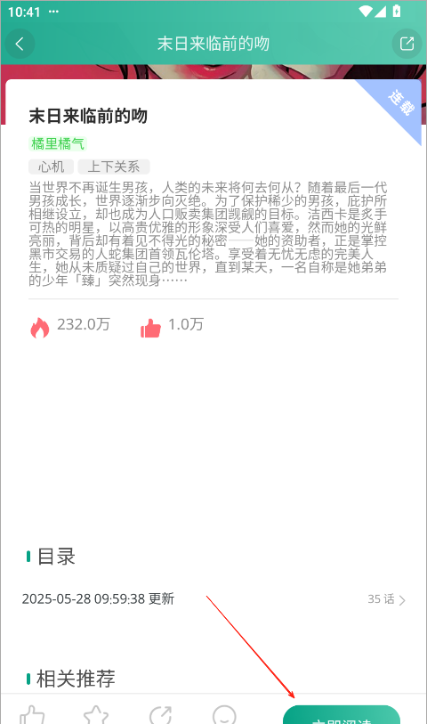 2、找到想看的漫画后,选择“立即阅读”