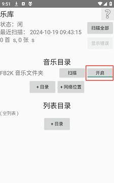 3、将下列状态开启,然后再点击扫描就可以导入本地的歌曲了