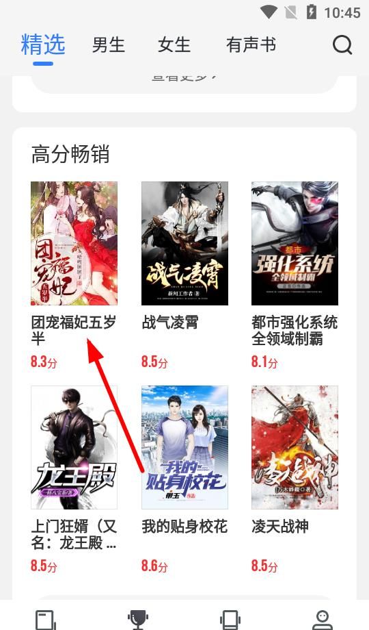 1、打开免费追书App,在书城页面选择想阅读的小说,如团宠福妃五岁半。