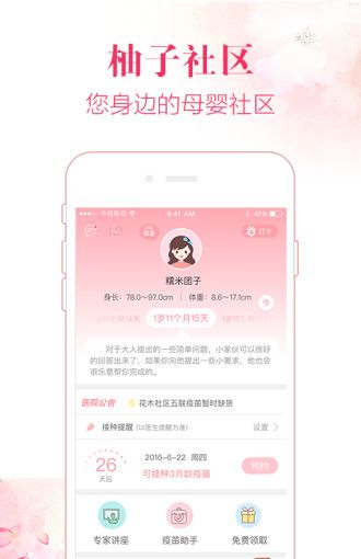 柚子社区,专业的宝宝疫苗预约接种育儿App,宝爸宝妈必备育儿神器,可以在线预约接种时间免排队、疫苗接种提醒、产检报告解读,提供专业育儿问题的解答和科学育儿知识。
