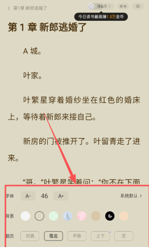 3,阅读时点击屏幕中央调出设置菜单,可以调整字体大小和背景颜色,夜间推荐使用深色模式保护眼睛。