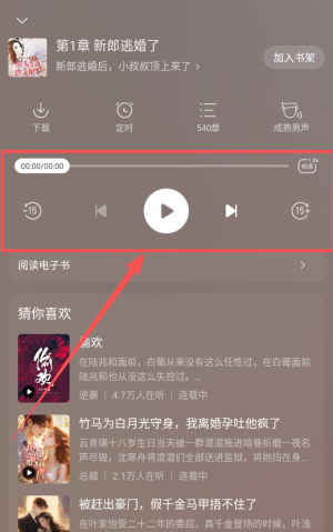 4,想听书时点一下章节内容区域,选语音朗读按钮,然后选择喜欢的音色和语速,关闭屏幕也能继续听。