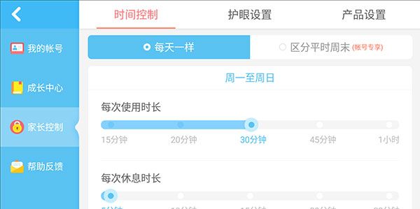 5、家长还可以控制使用时长和休息时长。