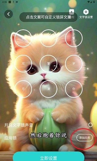 5、点击进行文字自定义,然后点击右边添加应用。