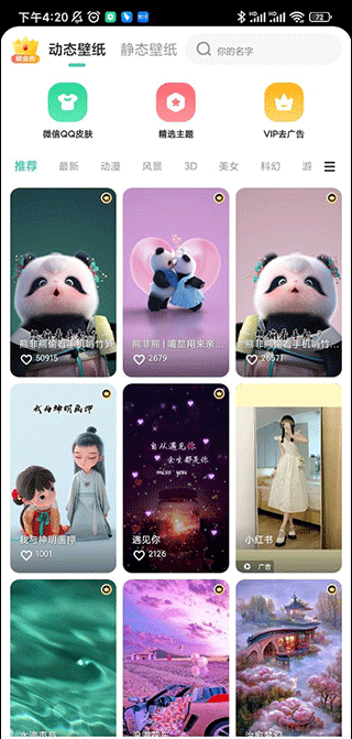 2、多样化的主题选择:提供了丰富多样的主题分类,包括自然风光,动物,动漫等。