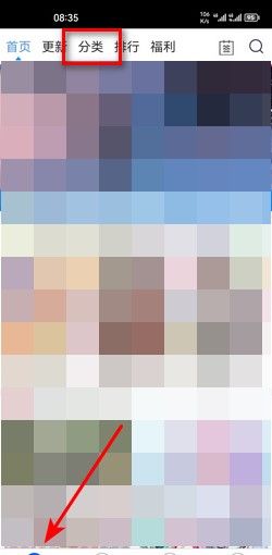 2、在App首页点击上方的漫画【分类】选项。