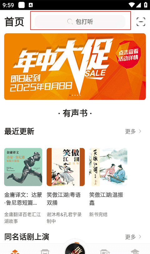 2、在搜索栏输入想要听书的书籍名称,点击搜索进入;