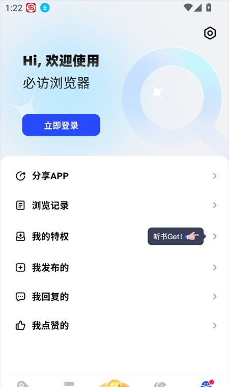 5、在我的界面下,我们可以查看自己的发布、回复、点赞,只不过需要注册登录才能够使用。