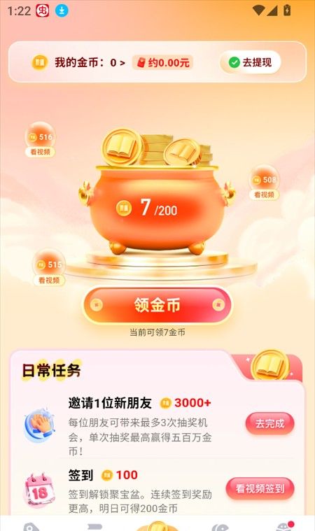 3、在赚金币界面下,我们能够领取到相应的金币奖励,可以兑换成相应的现金。
