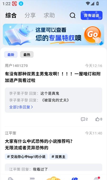 4、在社区界面下,我们可以和一众书友进行小说剧情讨论。