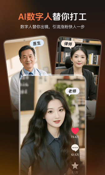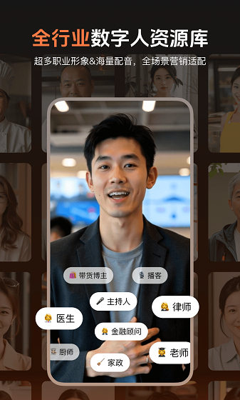 2、虚拟数字人播报:提供多种风格的AI虚拟主播形象,支持自定义形象、口型同步与多语言播报,替代真人出镜。