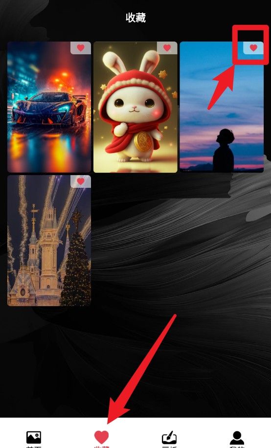 2、收藏页面可查看已收藏壁纸,再次点击红心图标可取消收藏,方便用户管理图片。