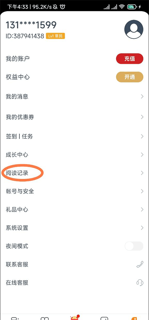 点众小说app如何查看自己的阅读记录