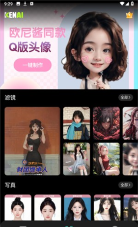 3、进入ai创作,可以制作超多可爱的头像,还有丰富的滤镜以及写真。