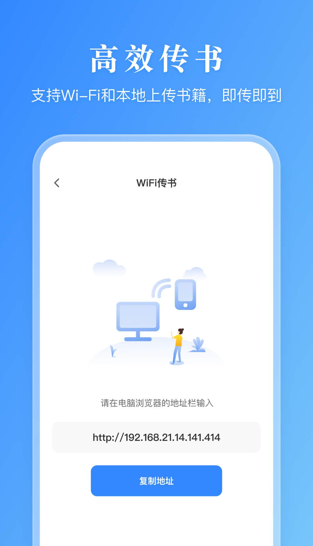 1、高效传书:支持Wi-Fi和本地上传书籍。