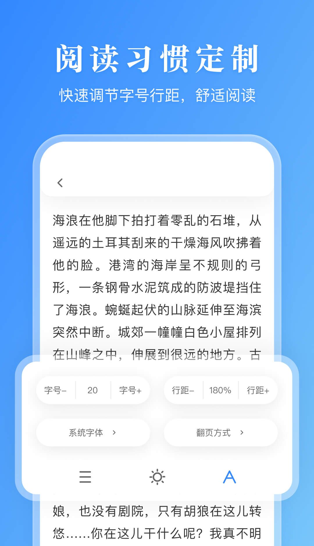 4、阅读习惯:快速调节字号行距,舒适阅读。一键切换阅读字体,久看不腻。