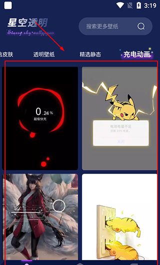 2、在【充电动画】页面内下滑进行选择喜欢的充电动画;