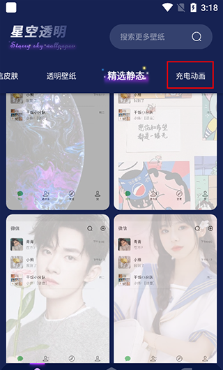 星空透明壁纸是一款简单好用的主题壁纸软件,拥有详细且全面的壁纸分类,包括游戏,动漫,风景,二次元等各种壁纸资源,还能及时更新各种优秀的壁纸桌面,方便用户免费下载应用并及时更换,给用户带来全面的壁纸服务,还具有便携的壁纸搜索方式,可以快速检索各种好看的壁纸,能完全满足用户的所有使用需求,还提供全新的DIY壁纸功能,可以轻松制作个性化的壁纸桌面,有需求的用户欢迎来本站下载软件吧。