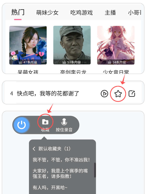 加载语音包列表需要连接网络。在App选择语言包进行收藏后,在悬浮窗点击【收藏】,选择想要播放的语言包,点击打开语言包下面的全部语音,选择一条语音,点击即可播放。
