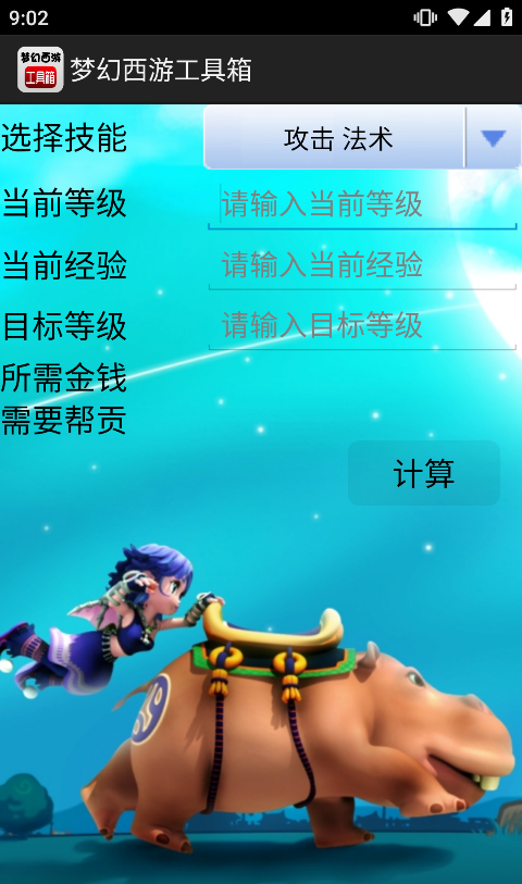 1、首先下载并安装梦幻西游工具箱计算器后,进入到软件的主页面可以看到有很多可以计算的内容。