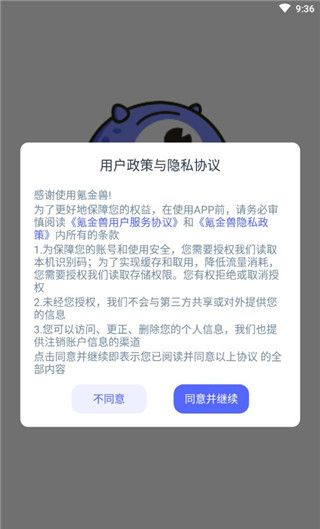 1、在本站下载氪金兽app并打开然后同意许可协议;