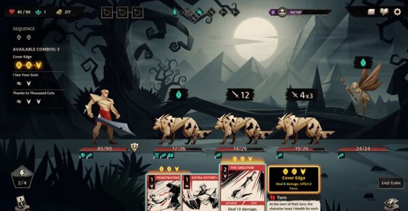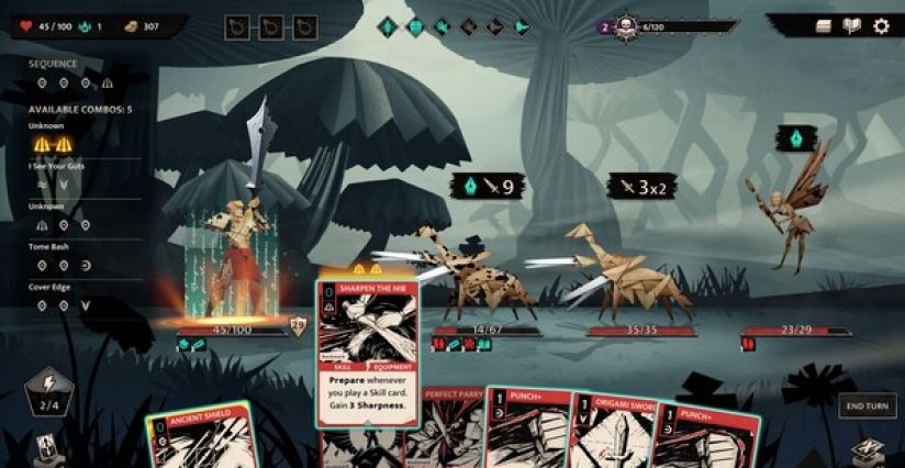 七场难度递增的战斗中,敌人会随剧情进化出更强抗性,需灵活调整牌组与战术,利用环境互动(如撕裂纸张制造陷阱)存活到最后。