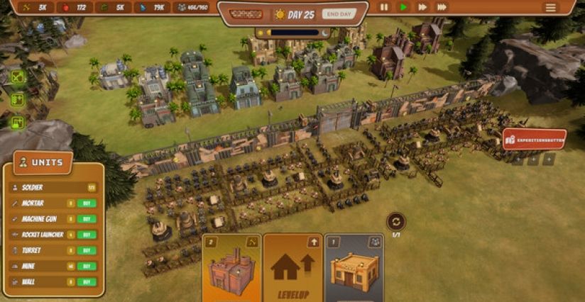 在《City Defense Z》中,管理资源来建造您的建筑并高效利用您的空间。白天,合并相同类型的建筑以建立和增强强大的城市,并在夜间的黑暗中抵御僵尸。小心!您的决策将决定您的城市是否在一夜之间倒下。明智地利用您的资源,并根据需求放置建筑。