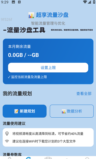 最后点击下方沙盘工具,还可以设置流量上限,新建流量的使用规划等。
