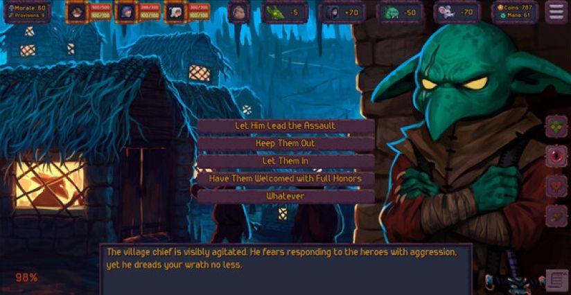 随心所欲地击败你的敌人!在战斗中杀死英雄,在密室中击败他们,让他们挨饿,昏暗他们的思想,降低他们的士气,组织阴谋,在旅行者中制造不和!