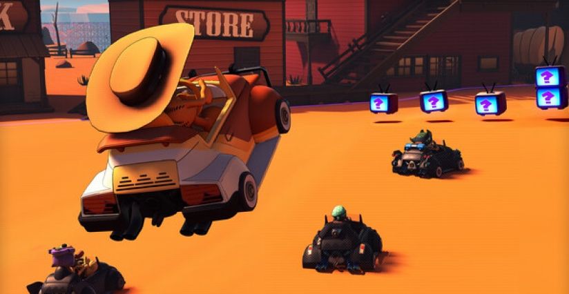 在来自三个独特宇宙的古怪赛道上与好友一较高下!穿越神秘的侦探场景,进入海盗出没的海域,或沿着古老的牛仔小径一路飞驰。