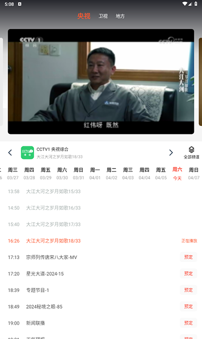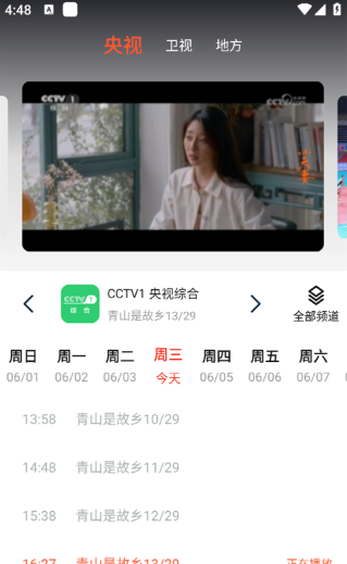 2、直播版块内可以看到当前频道的节目播放单。