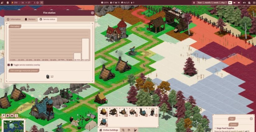 3、随着定居点的发展,你将面临不同的挑战。你需要管理资源的生产和分配,防范和应对火灾、疾病和犯罪等威胁。