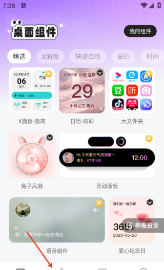 1、首页提供多种桌面组件,查看页面最下方的三个栏目,点击第二个 “桌面主题” 进入。