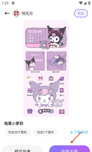 3、在该主题详情页中,点击 “安装主题” 选项。