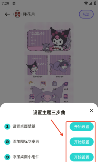 4、安装需完成三个步骤:一是设置桌面壁纸,二是添加图标到桌面,三是添加小组件,按顺序点击 “开始设置”,即可完成安装。