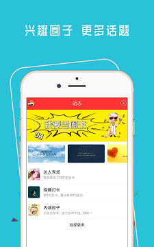 5、进入动态交流圈中心,关注自己喜欢的圈子,在线互动社交。