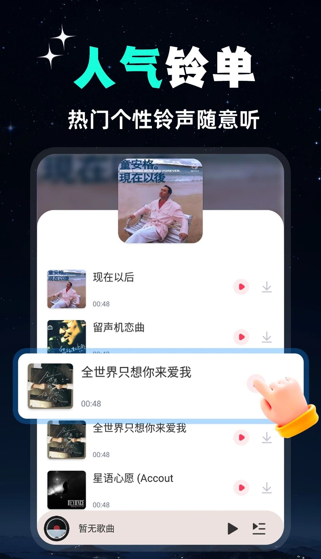 全民免费音乐是一款简单的免费音乐软件,拥有全面的音乐歌单,可以让用户自由搜索查找各种优质且热门音乐歌曲资源,还能根据用户的听歌播放历史来推送每日音乐,随时随地在线听歌播放,自由享受优质的音乐播放体验,还具有全新的音乐播放功能和选项,可以直接设置音乐,免费播放感兴趣的音乐歌曲并及时下载,能完全满足所有音乐需求,还支持多账号登录,可以轻松同步用户的音乐播放列表,有需求的用户欢迎下载。