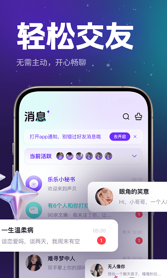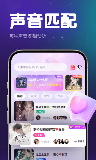 2、智能匹配系统:基于兴趣标签、活跃时间段和语音偏好,准确推荐与你相处融洽的用户,快速破冰交友。