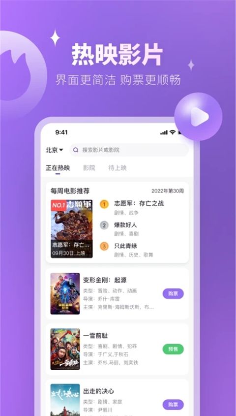 3、及时更新:实时同步各大影院的放映时间表,并首先更新新电影预售、取消和其他变更。