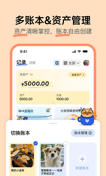 4、账单自动同步:支持绑定银行卡、支付宝、微信等账户,交易记录自动同步,记账更全面高效。