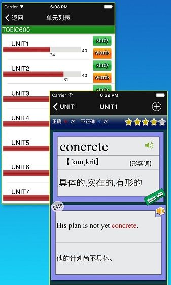 1、精确的词库:它包括托业考试的高频核心词汇,涵盖了听力和阅读中经常测试的关键点。