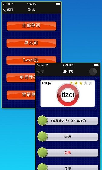 2、多维练习:包括单词选择、拼写填空、听力意义辨别、同义词替换等多种训练模式。