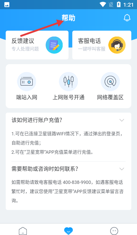 2、帮助页面突出反馈建议与客服电话,针对账户充值、咨询帮助等问题给出解答,提供贴心售后支持。